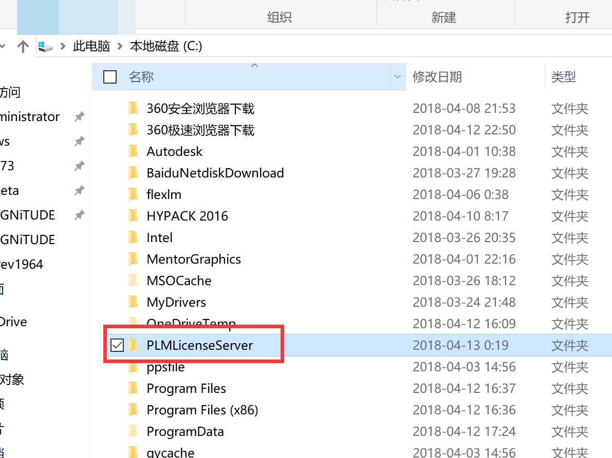 10.成功安裝和打好補丁后,注意先不要運行軟件,一定不要運行軟件 一定不要運行軟件,否側是無法激活的。在C盤根目錄下建立一個“PLMLicenseServer”文件夾。