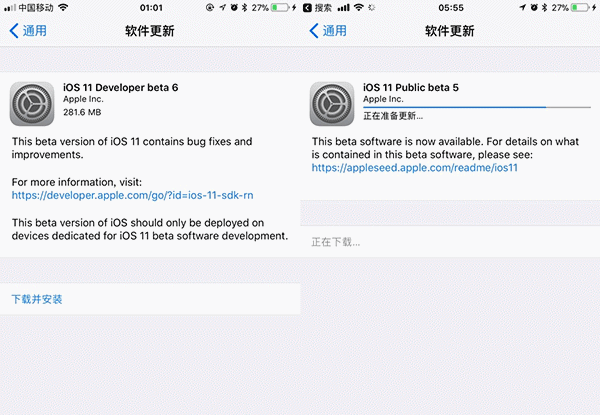 iOS 11預覽版用戶可以通過iPhone、iPad和iPod touch設備預先通過Safari瀏覽器下載一個描述文件(點此下載| 注:需要點擊文章底部分享按鈕,選擇“Safari打開”該新聞,然后再點擊前方鏈接即可安裝描述文件),需要注意的是你要刪除之前已經安裝過的其它描述文件,然后按照提示安裝描述文件并重啟手機。