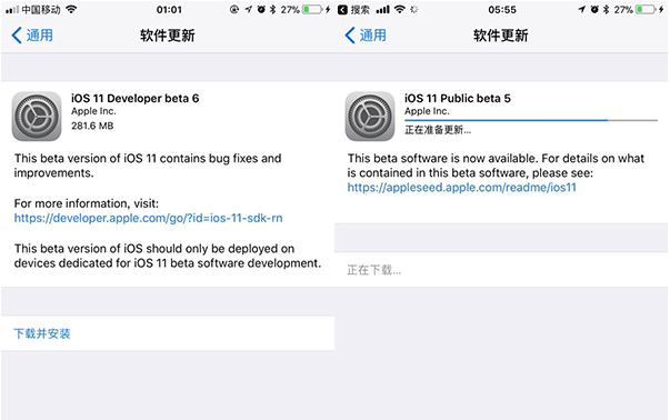 今天凌晨,蘋果向iPhone、iPad和iPod touch推送了iOS 11開發者預覽版beta 6和公測版beta 5更新。在iOS11系統中,蘋果帶來了拖放、控制中心可自定義等新功能,同時,多任務界面也經過了重新設計。此次更新主要以bug修復和性能提升為主。