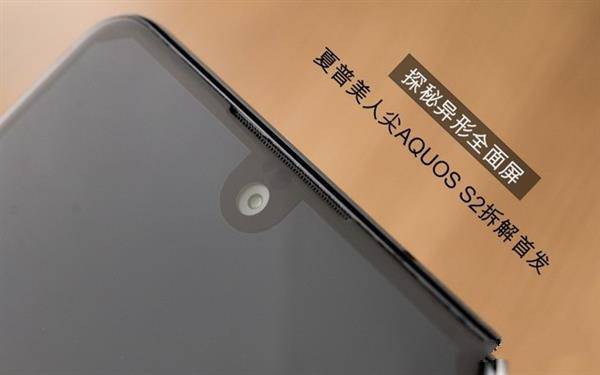 接下來我們先來看看該機的細節,夏普美人尖AQUOS S2采用了一塊異形全面屏,之所以異形其一是因為在屏幕頂端兩邊,采用一條斜切線將屏幕的邊角切掉,這樣設計可以防止脆弱的屏幕過于接近容易磕碰的邊角而導致擠壓破損也可以在視覺上讓這里不太突兀。
