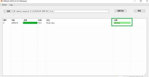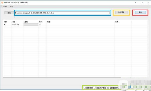 點擊黃色圈選部分加載設備,刷機程序會自動識別手機,點擊紅色圈選部分刷機開始刷機。