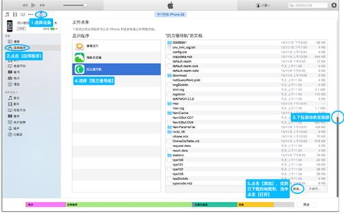 關(guān)閉凱立德導(dǎo)航,將iPhone/iPad與電腦連接,打開iTunes,將地圖添加到設(shè)備,操作方法如圖所示。