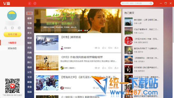 v篇客戶端是一款功能全面的多媒體社交平臺(tái)應(yīng)用,v篇客戶端專為喜歡分享的用戶定制,可隨時(shí)隨地記錄精彩,分享美好!軟件集音視圖文為一體,有需要的朋友快來下載試試吧!